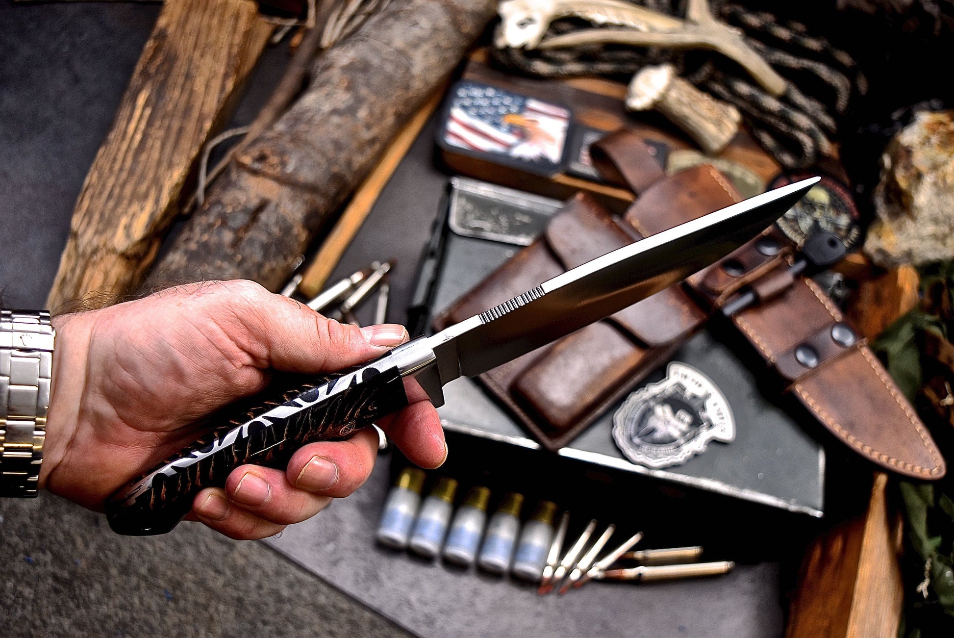 CARE: When needed, use a Diamond Wet Stone to re-sharpen the blade. When done using the knife, wash it with soap and water, dry completely, coat with olive oil, and store away from the sheath. Leather pulls moisture out of the air and can rust the blade if stored improperly for long duration of time in the sheath.