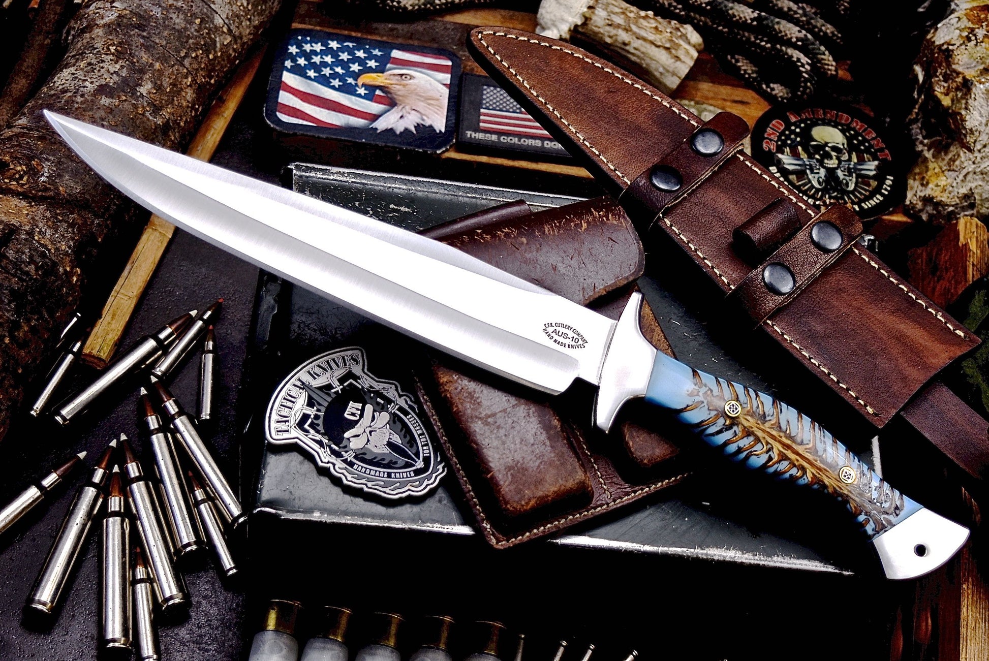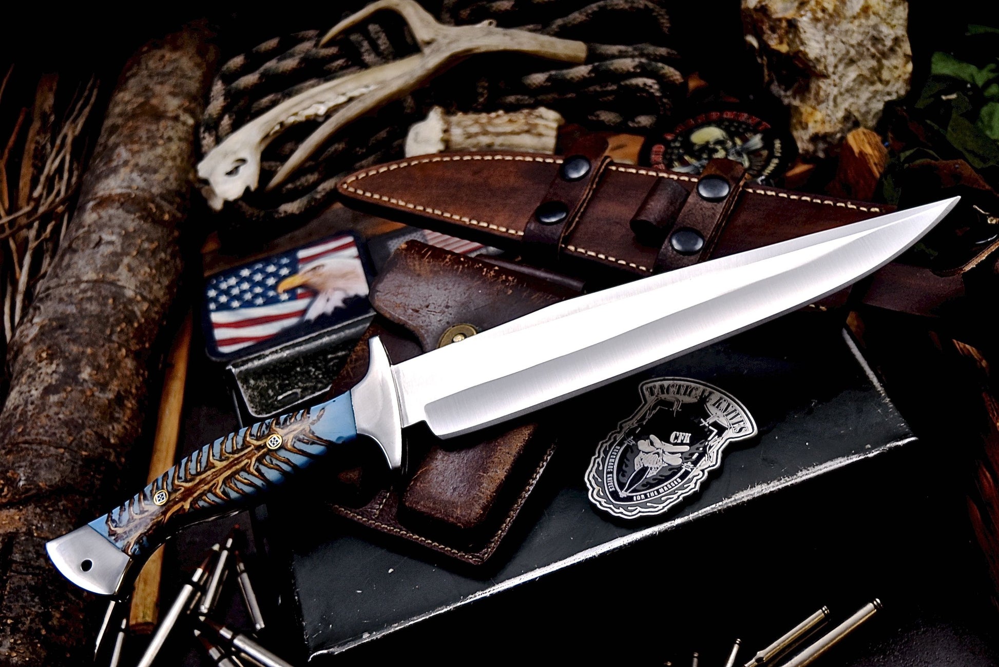 CFK Handmade AUS 10 Custom BLUE PINE CONE Large Hunting Knife & Sheath Set