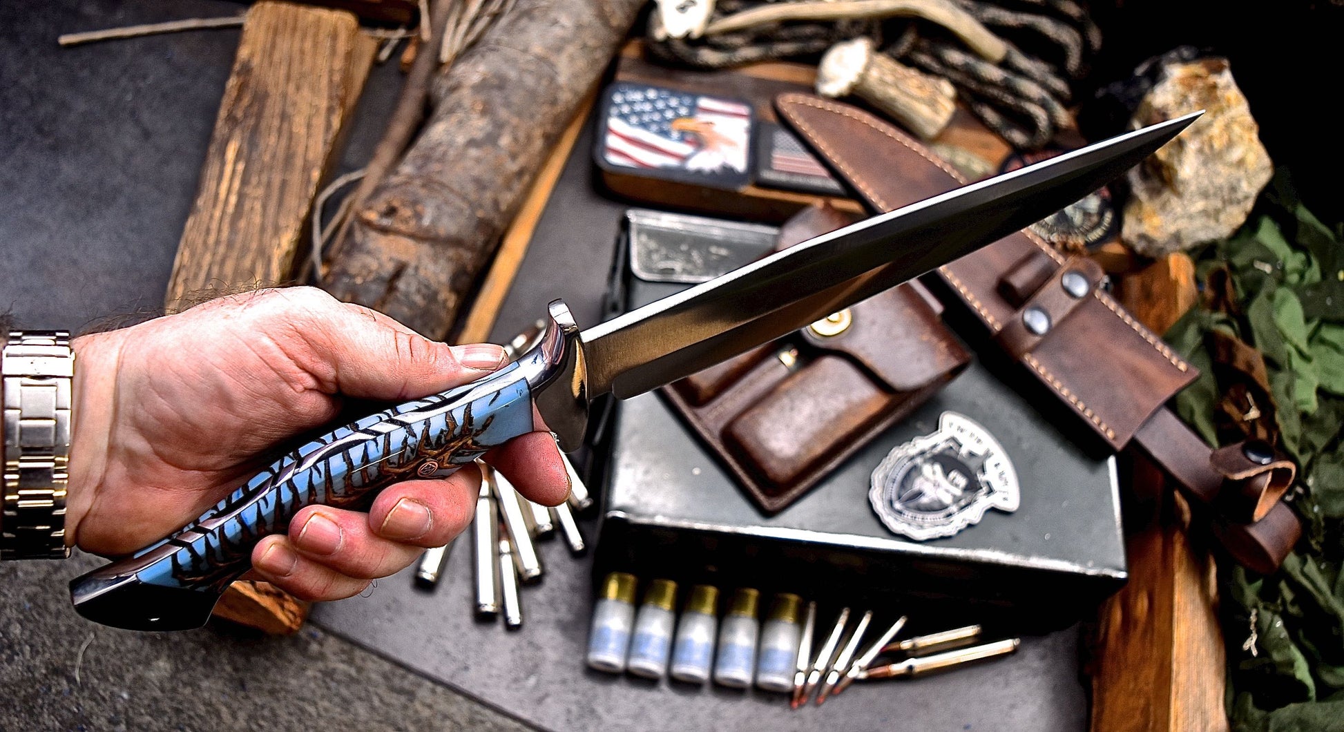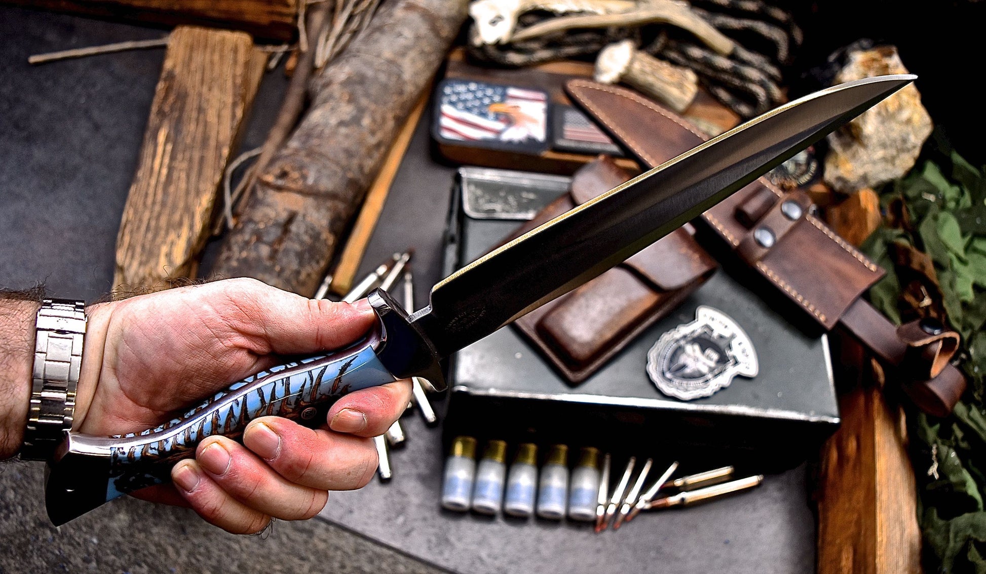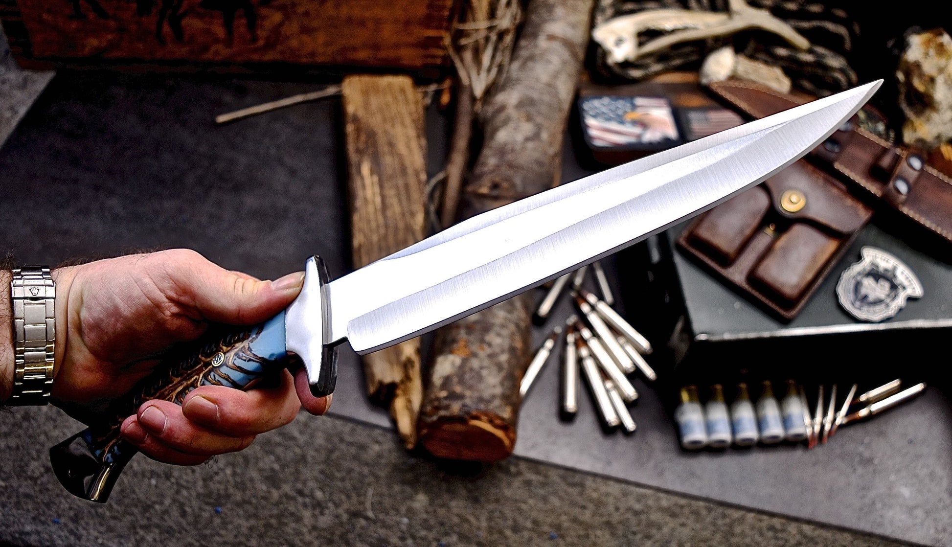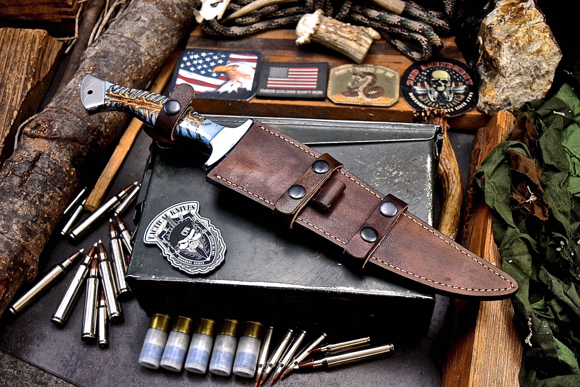CARE: When needed, use a Diamond Wet Stone to re-sharpen the blade. When done using the knife, wash it with soap and water, dry completely, coat with olive oil, and store away from the sheath. Leather pulls moisture out of the air and can rust the blade if stored improperly for long duration of time in the sheath.