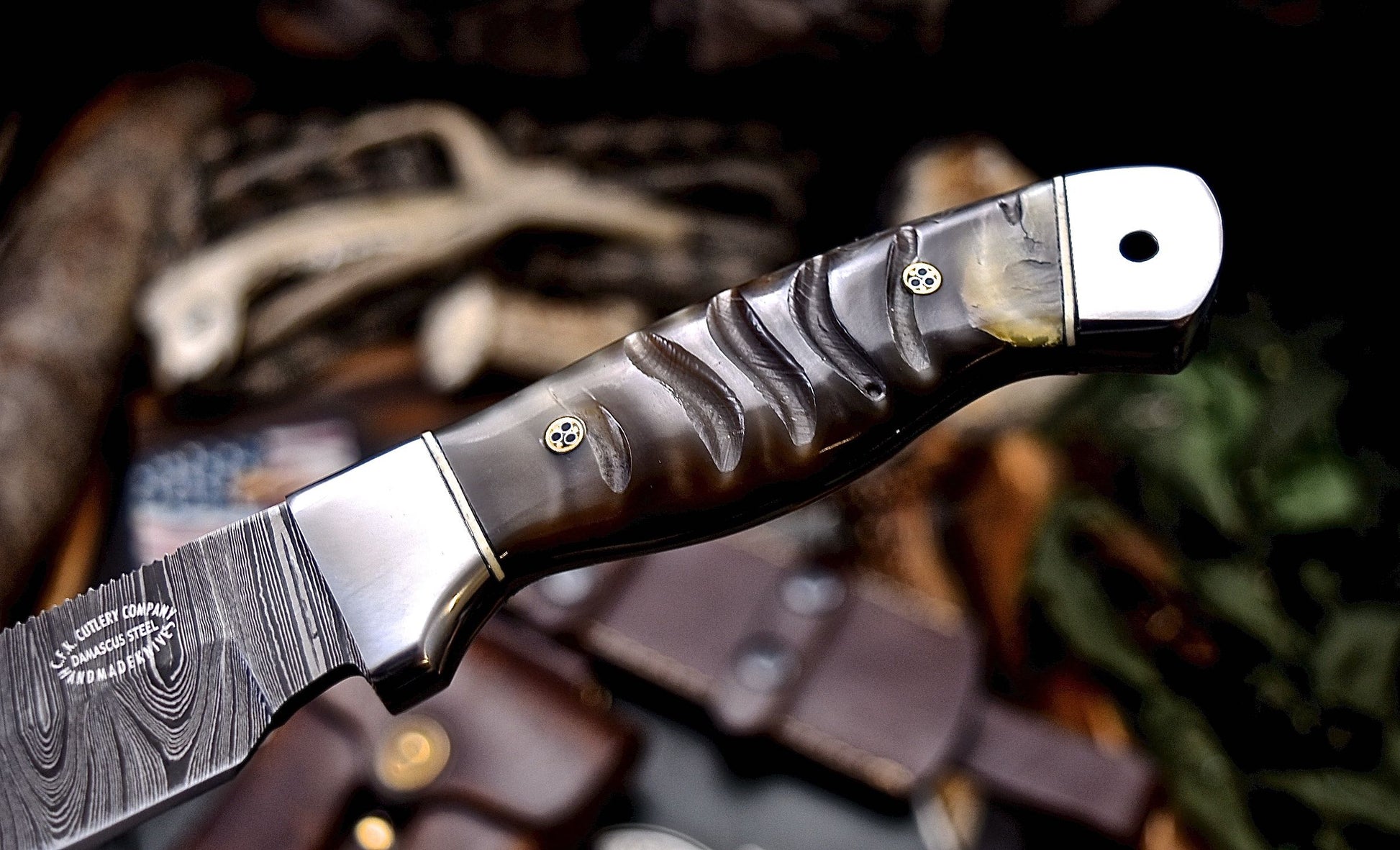CFK Handmade Damascus Custom GENUINE SHEEP HORN Hunting Skinner Knife